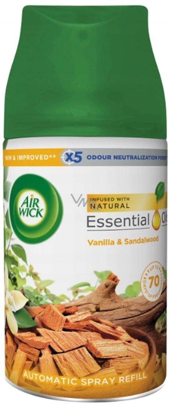 Odświeżacz Air Wick Wanilia i Drzewo Sandałowe doskonale sprawdzi się:
