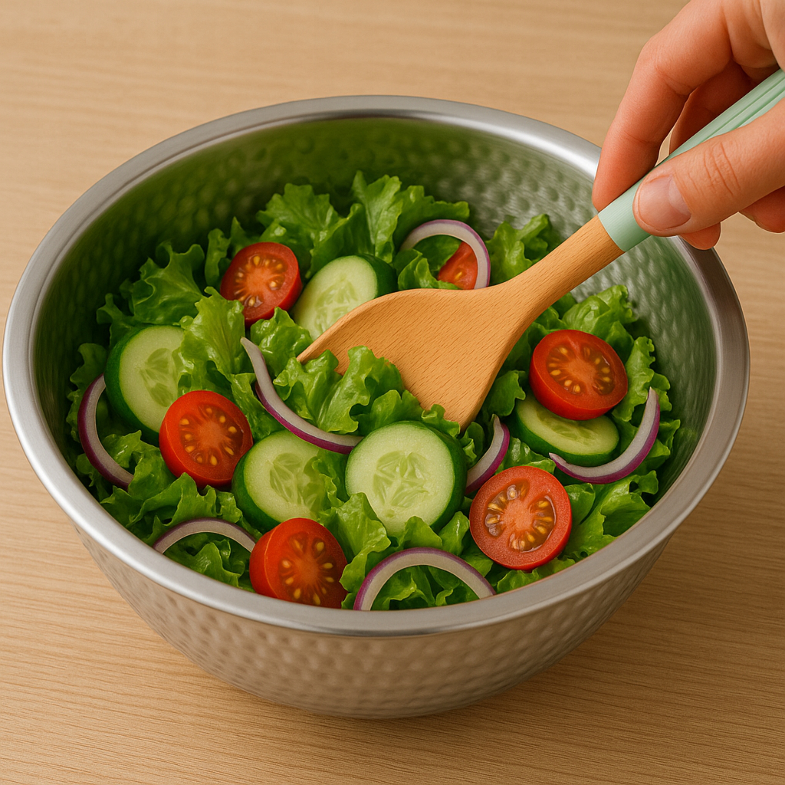✅ Dzięki średnicy 23 cm misa ma idealny rozmiar do codziennego użytku, a odporna na korozję stal zapewnia długowieczność i łatwość czyszczenia – także w zmywarce.