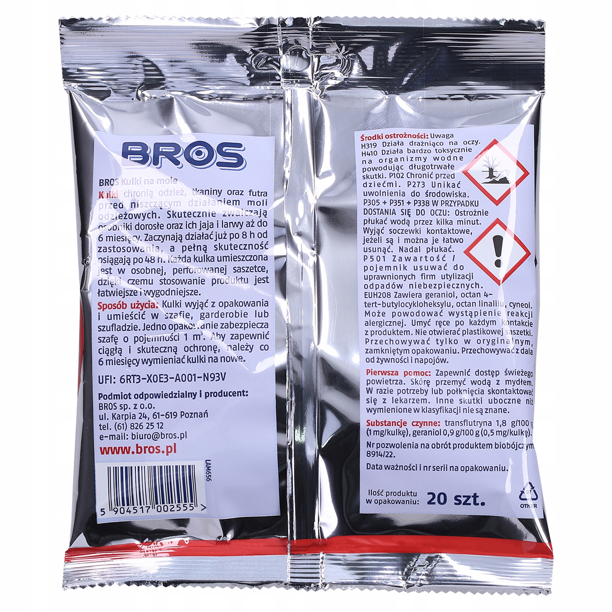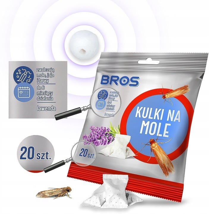 Kulki skutecznie chronią odzież w szafach, szufladach i garderobach. Zwalczają dorosłe osobniki moli odzieżowych oraz ich jaja i larwy. Każda kulka umieszczona jest w osobnej, perforowanej saszetce, dzięki czemu stosowanie produktu jest łatwiejsze i wygodniejsze.