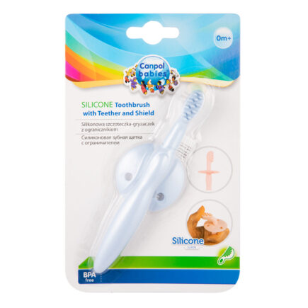 Canpol Babies silikonowa szczoteczka‑gryzak z ogranicznikiem (model 51/500, niebieska)