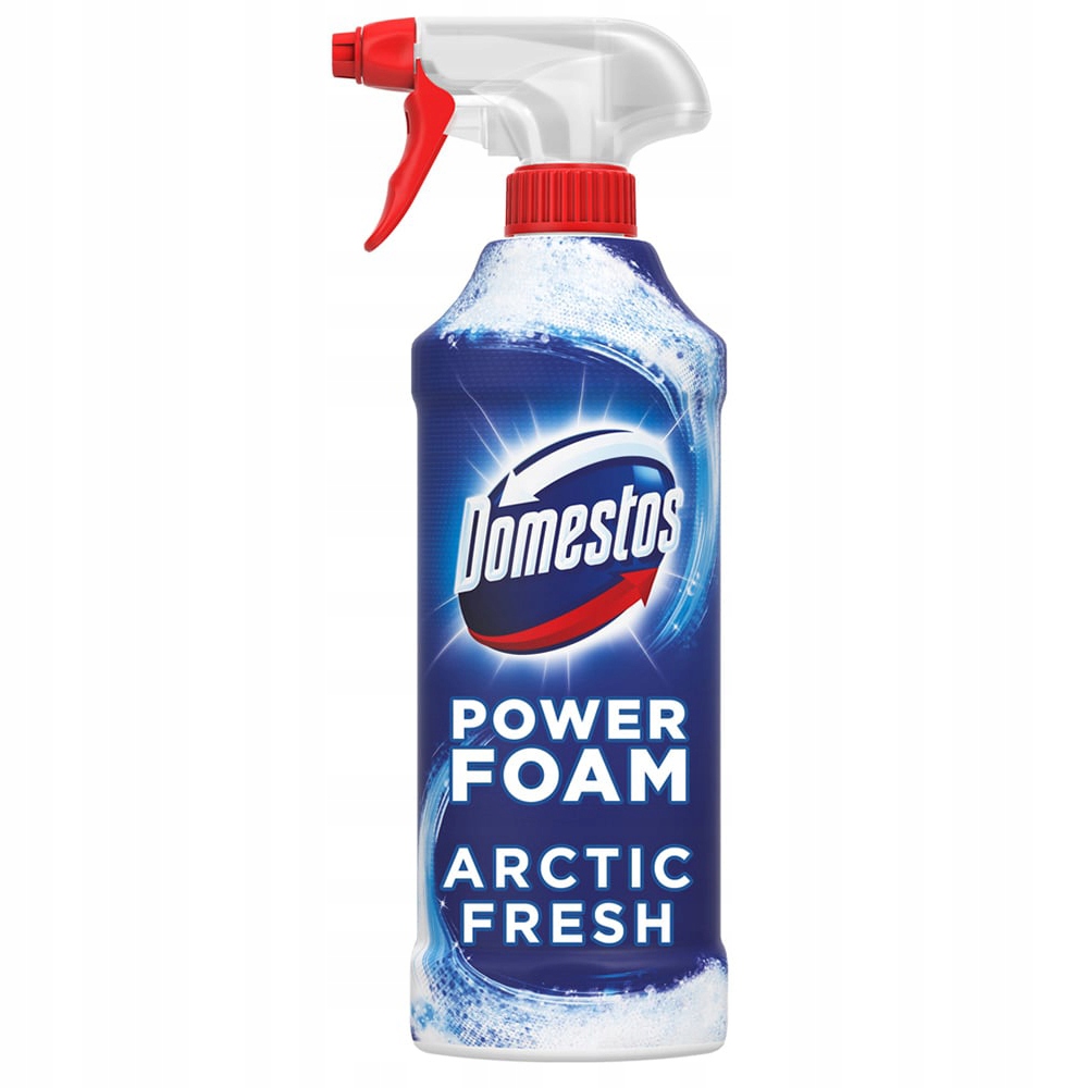 Pianka w sprayu Domestos Power Foam zapewnia wygodniejsze i skuteczniejsze czyszczenie toalet w nowej, rewolucyjnej formie. Specjalnie opracowany spray pozbędzie się wirusów i bakterii z toalety nawet w trudno dostępnych miejscach. Ten spray do czyszczenia toalet i łazienek jest skuteczny zarówno wewnątrz, jak i na zewnątrz toalety. Chcesz wyeliminować zarazki w najtrudniej dostępnych miejscach w toalecie i łazience? Środek do czyszczenia toalet i łazienek Domestos Power Foam Arctic Fresh został specjalnie zaprojektowany do pracy do góry nogami i usuwa 99,99%* patogenów. Skutecznie usuwa kamień wewnątrz i na zewnątrz toalety we wszystkich trudno dostępnych miejscach. Nadaje się do wszystkich powierzchni łazienkowych, takich jak płytki, umywalki, krany, lustra i prysznice, skutecznie usuwa kamień i osady z mydła. Pianka rozszerza się, aby dotrzeć i usunąć bakterie ze wszystkich obszarów.