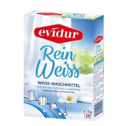 Evidur Reinweiss to specjalistyczny proszek do prania dedykowany białym tkaninom – przede wszystkim firanom, ale też koszulom, obrusom czy bieliźnie.