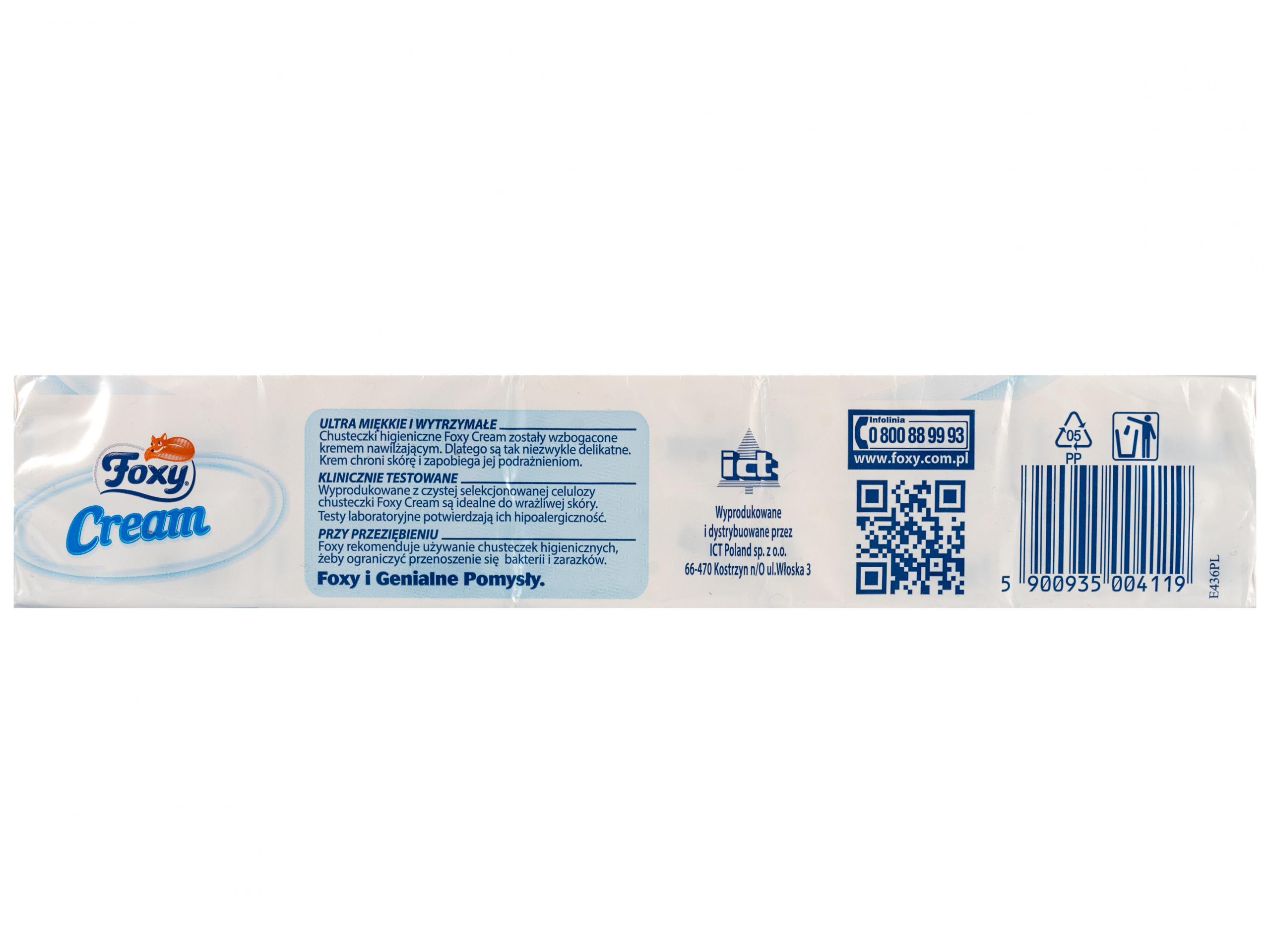 Wyprodukowane z czystej selekcjonowanej celulozy chusteczki Foxy Cream są idealne do wrażliwej skóry. Testy laboratoryjne potwierdzają ich hipoalergiczność.