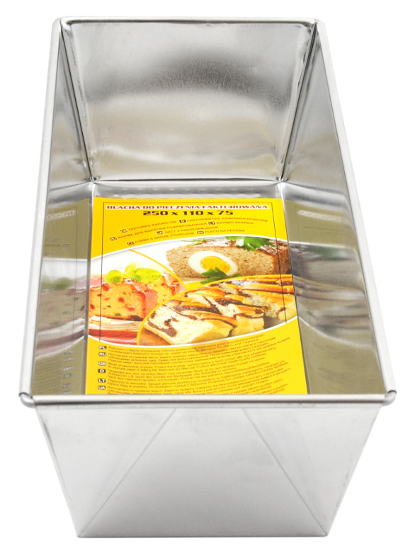 Wysokiej jakości blacha, forma do pieczenia fakturowana polskiego producenta. Wymiary: 25x11x7,5 cm. Wykonana z wysokiej jakości blachy ocynowanej.