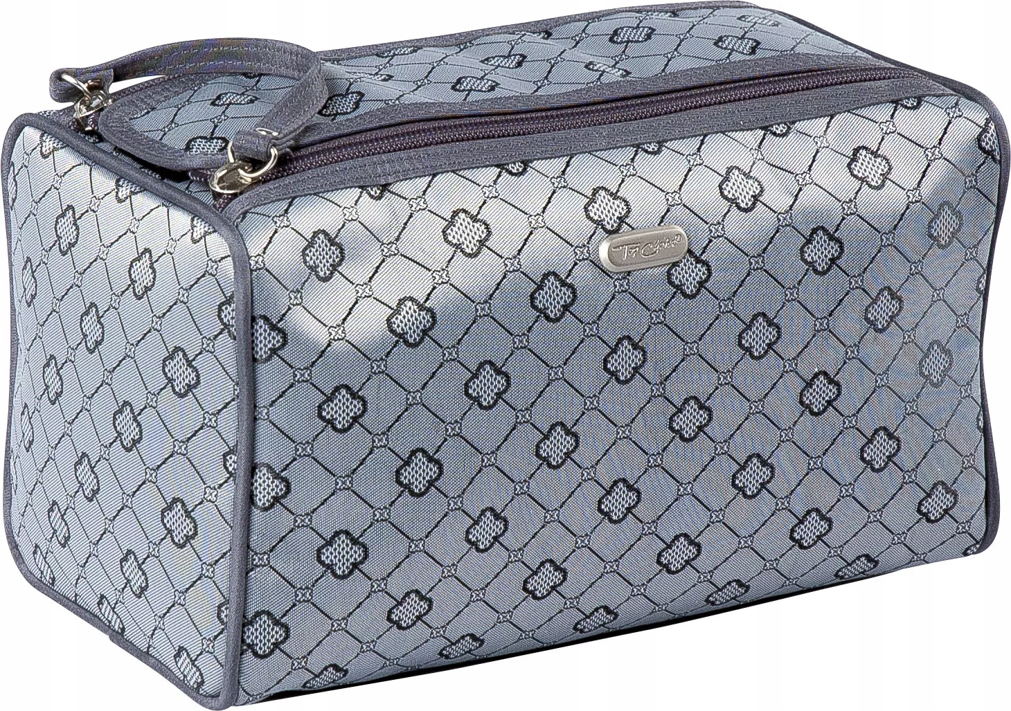 Kosmetyczka posiada zamek i poręczny uchwyt.