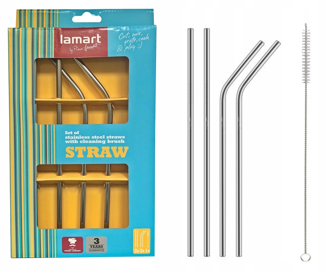 Zestaw słomek do picia wielorazowego użytku firmy Lamart w ze szczoteczką do mycia. Z powodzeniem wykorzystasz je w czasie lata do picia chłodnych napojów, do drinków w czasie domowych imprez lub do owocowych koktajli na śniadanie. Wykonanie ze stali nierdzewnej daje możliwość wielorazowego użytku. Dołączona do zestawu szczoteczka myjąca pozwala na łatwe czyszczenie.