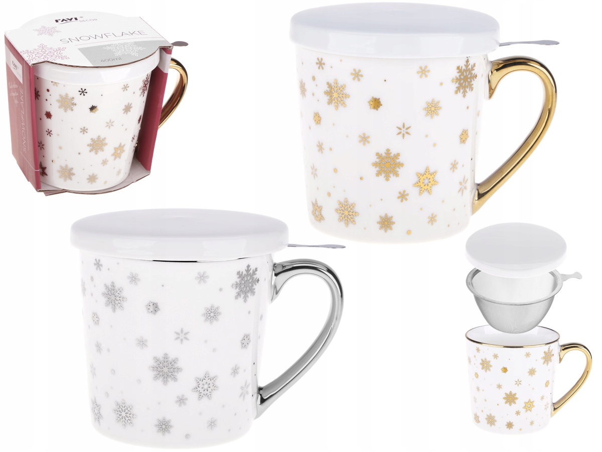 KUBEK Z ZAPARZACZEM SNOWFLAKE PORCELANA 400ml 81444