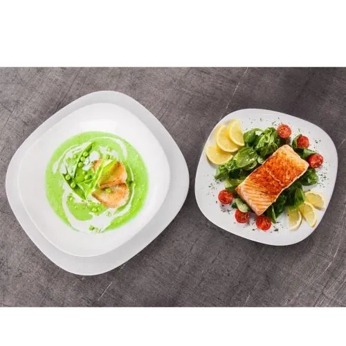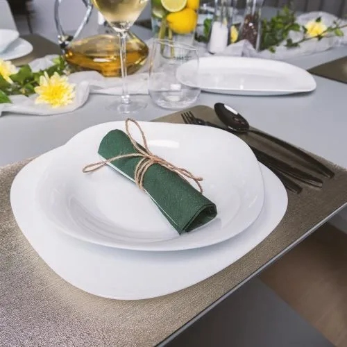 Talerz wykonany jest ze szkła hartowanego. Ten rodzaj szkła jest o wiele bardziej odporny na zarysowania i stłuczenia niż produkty wykonane z porcelany i porcelitu. Posiada idealną gładką powierzchnię, co sprzyja dokładnemu myciu i suszeniu. Dzięki temu na powierzchni nie osadzają się mikroorganizmy i bakterie.
