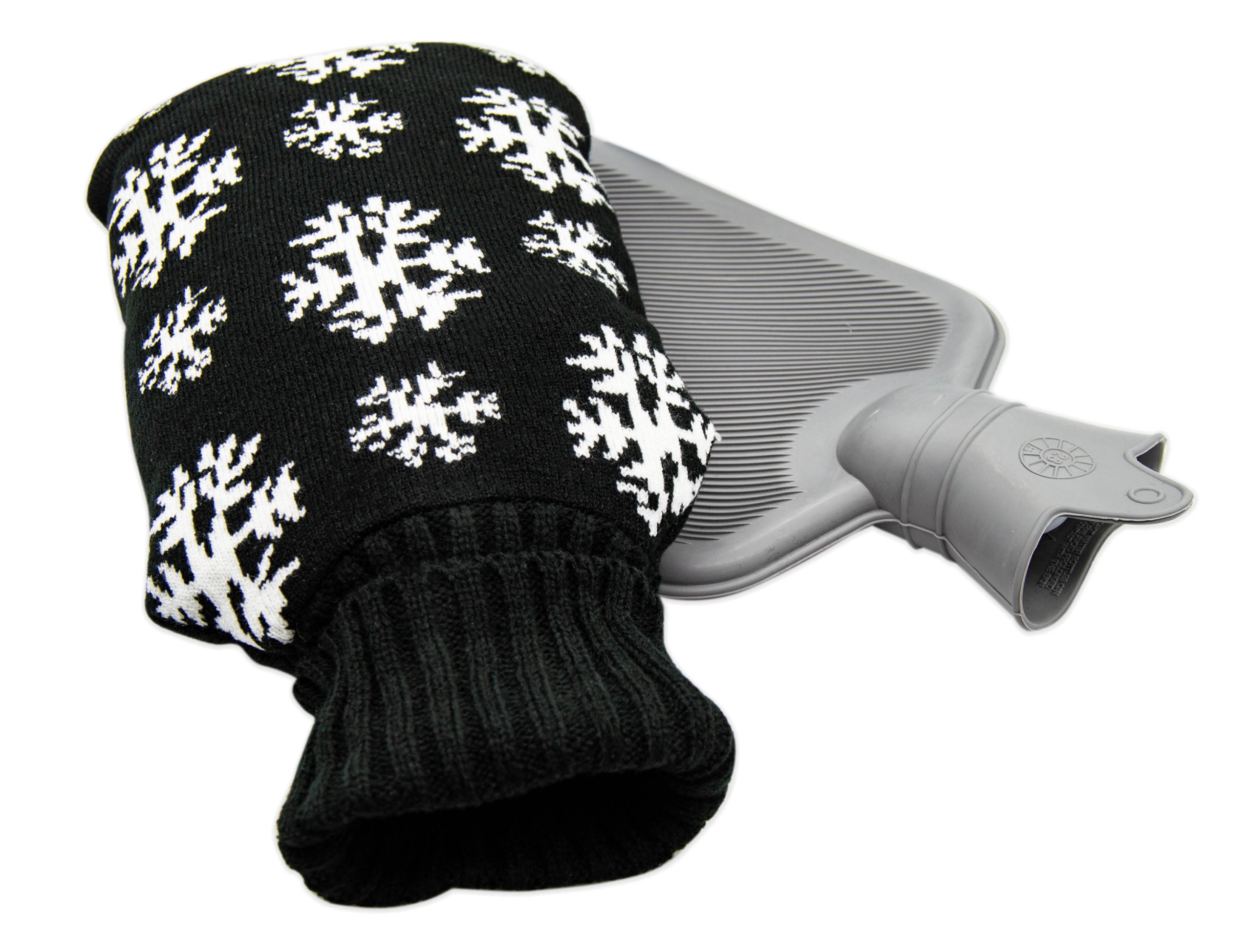 - termofor w biało-szarym pokrowcu we wzór śnieżynki.