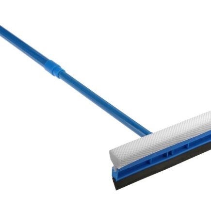 Praktyczny zmywak dwustronny teleskopowy o regulowanej długości od 40 do 70 cm, przeznaczony do skutecznego mycia szyb i innych gładkich powierzchni. Z jednej strony posiada miękką gąbkę do usuwania brudu, a z drugiej stronny – wycieraczkę z gumy, która pozwala na szybkie i